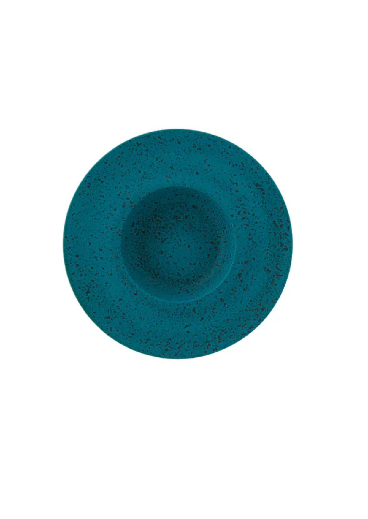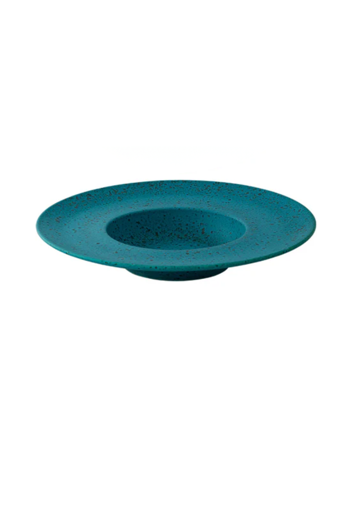 Prato pasta, em formato redondo irregular, produzido em grés texturizado, na cor verde. Pode apresentar variações de tonalidade por se tratar de uma peça de processo manual.